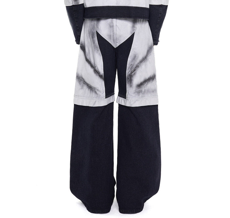 Leather Patchwork Denim Coat